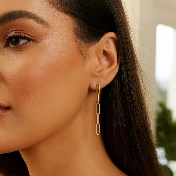 The boldness of polished paperclip chain combines with the luxury of 14K yellow gold to create these stunning dangle earrings. Post earrings measure 75.7x5.5mm and are held in place by pushback clasps.
