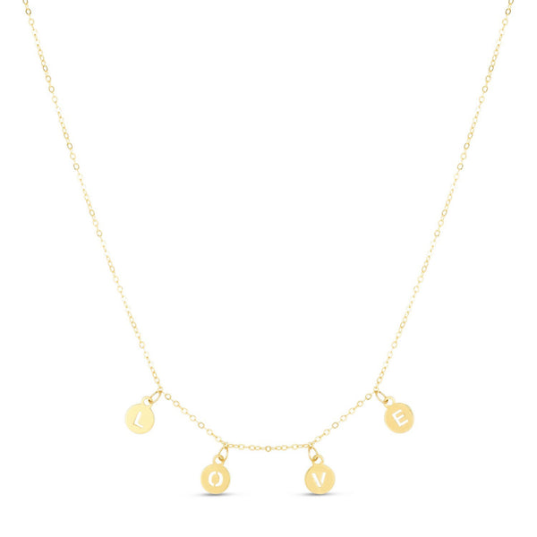 14k Yellow Gold Love Necklace with Circle Drops