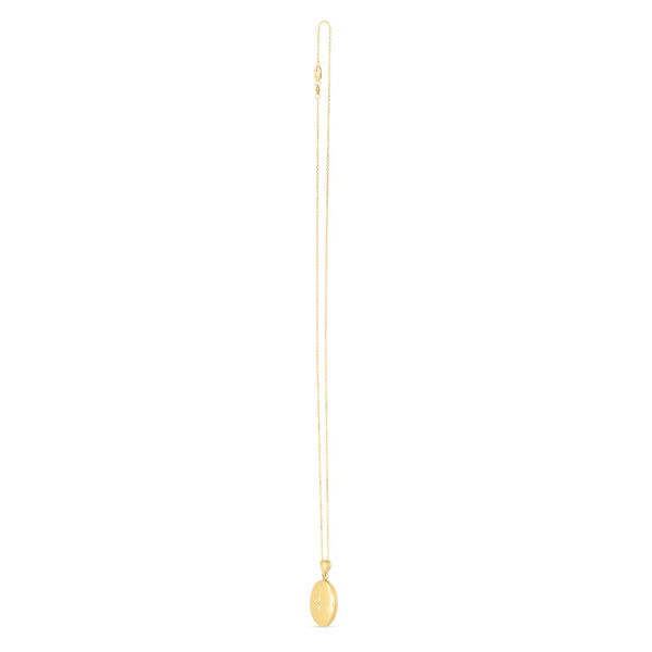 This beautiful 14k yellow gold Oval North Star Locket necklace sits close to the heart. It comes in a high polish finish & closes with a lobster clasp. This stunning piece is hand crafted & sits effortlessly between a glimmering rolo chain. A small diamond perfectly placed gives you that little extra sparkle. Measuring 18 inches in length.