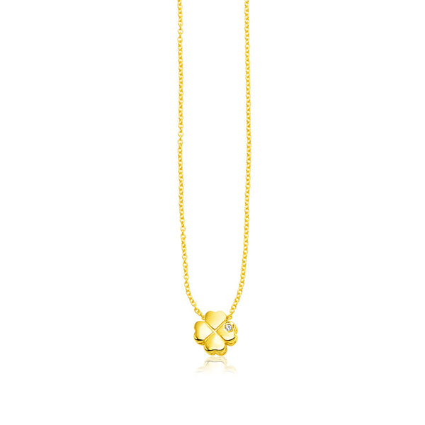 Bask in the sparkle of good luck when you wear this lovely 14k yellow gold necklace adorned with a sweet, sparkling diamond. Necklace is 18 inches long and closes with a lobster clasp. Weight of diamond is .004ct.