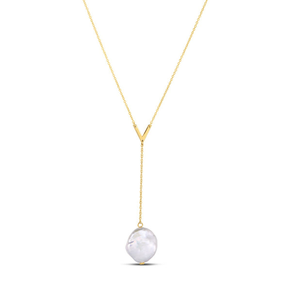 This Tesoro Pearl Lariat Cross necklace is a delicate piece to add to anyone's collection. Great for layering or wearing independently. Crafted in 14k yellow gold with a high polish finish & a lobster clasp closure. This necklace is irresistible. Measures 18 inches in length.
