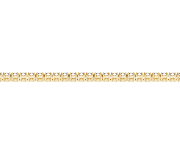 Classic four prong 3 carat total weight diamond tennis bracelet showcasing perfectly matched brilliant round cut lab grown diamonds set in 14k Yellow gold.