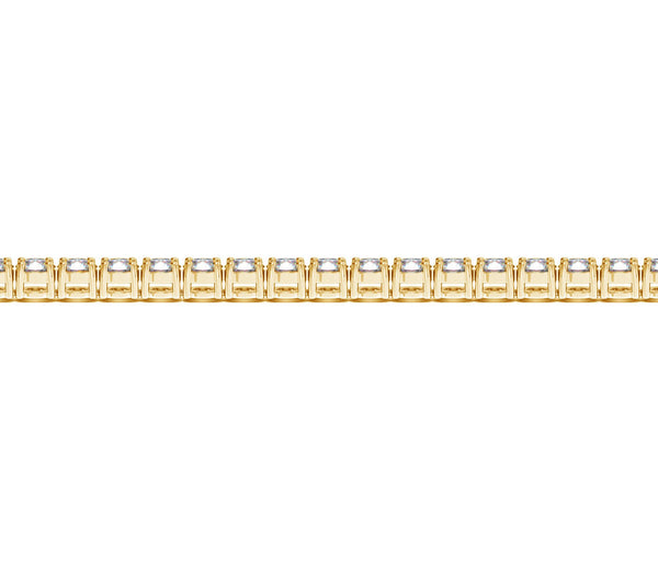 Classic four prong 7 carat total weight diamond tennis bracelet showcasing perfectly matched brilliant round cut lab grown diamonds set in 14k yellow gold.
