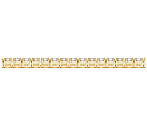 Classic four prong 8 carat total weight diamond tennis bracelet showcasing perfectly matched brilliant round cut lab grown diamonds set in 14k yellow gold.