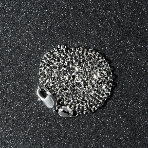 This diamond cut cable link chain comes in 18k white gold and has a width of 1.40 millimeters.
