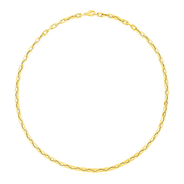 Dazzling links of 14k yellow gold paperclip chain are joined beautifully to create this stunning, versatile necklace. Necklace is 18 inches long and 4.2mm wide.