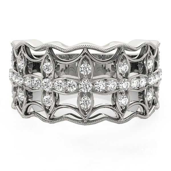Diamond Studded Four Leaf Clover Motif Ring in 14k White Gold (1/4 cttw)
