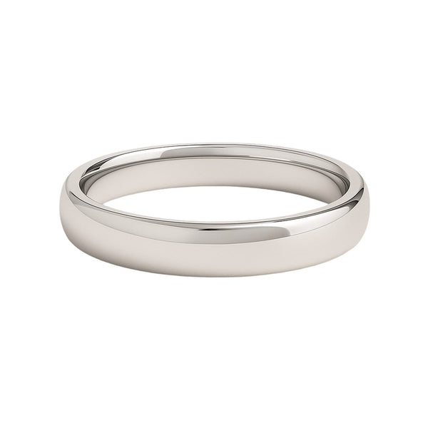 Traditional symbolism meets modern comfort and practicality in this elegant 14k white gold wedding band. Band is 4mm wide and is available in ring sizes 5 to 12.