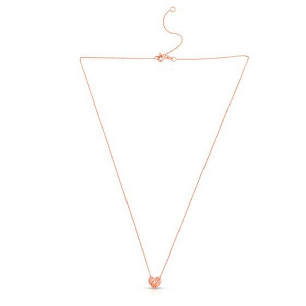 This Scribbles Heart necklace is a beautiful addition to complete your look. Great for layering or wearing independently. Crafted in 14k rose gold with a high polish finish & a spring clasp closure. Available in an 18 inches length.