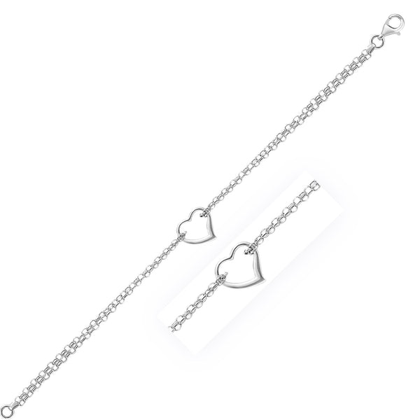 14k White Gold Cable Chain Anklet with Open Heart Station