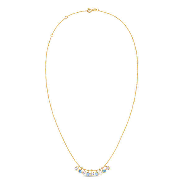 14K Yellow Gold Blue And White Topaz Dancing Drop Necklace