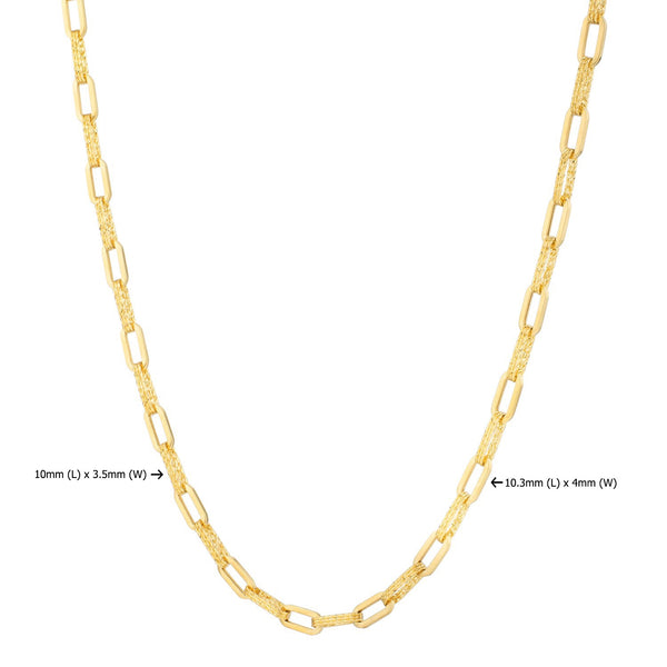Elegant 14k yellow gold necklace with a 4mm paperclip chain design and a lobster clasp for secure fastening. Measuring at an 18 inches length.