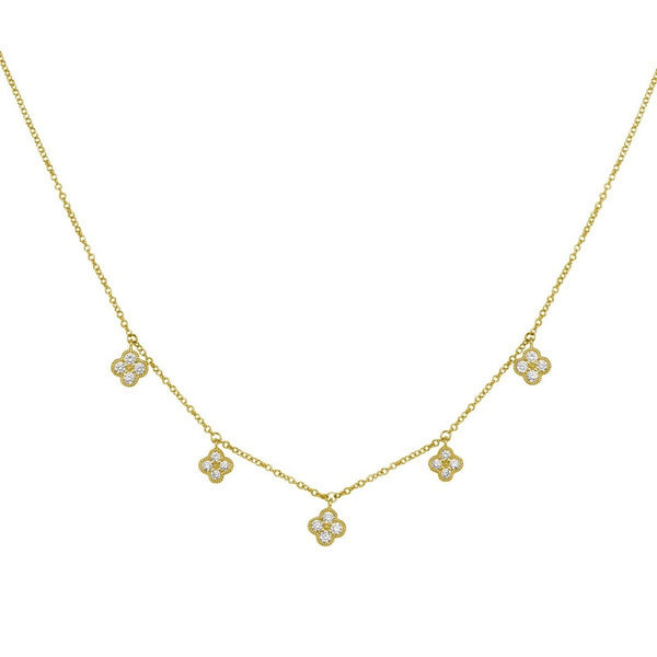 Elevate your elegance with our 14K Yellow Gold Diamond Flower Necklace. This exquisite piece features a delicate flower design adorned with sparkling diamonds, capturing the essence of timeless beauty. The 18 inches chain ensures a perfect fit, making it an ideal accessory for any occasion. Crafted with precision and care, this necklace adds a touch of sophistication to your jewelry collection.