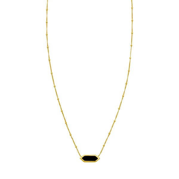 Introducing our 14K Yellow Gold Hexagon Onyx Pendant Necklace, a harmonious blend of modern design and classic elegance. This exquisite piece features a polished hexagonal onyx pendant, symbolizing strength and sophistication. The pendant is gracefully suspended from an 18 inches Saturn chain, secured with a reliable lobster clasp and an additional jump ring at 16 inches for versatile wear. Crafted from high-quality 14K yellow gold, this necklace adds a touch of luxury to any ensemble, making it an ideal gift or a cherished addition to your jewelry collection.