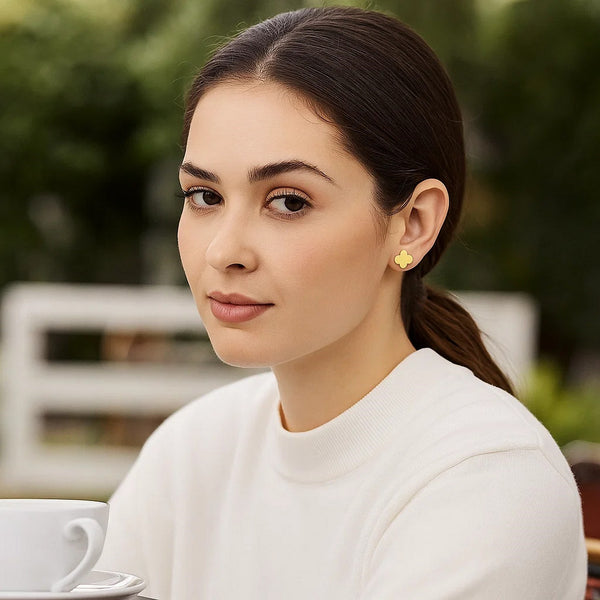 These Clover Stud earrings are a great addition. Can be that fun & elegant combination you are looking for. Crafted in 14k yellow gold with a high polish finish & a snap clasp closure.