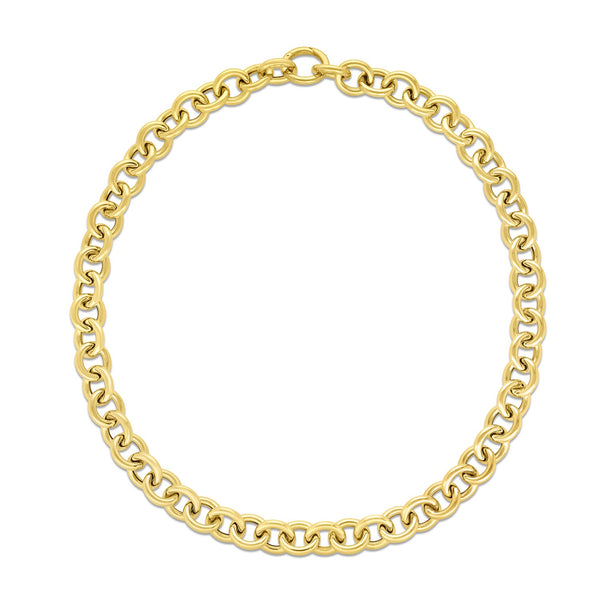 The Round Link chain is a unique addition to complete your look & express your style. Great for layering or wearing independently. Crafted in 14k yellow gold with a high polish finish & push clasp. Measuring 18 inches in length.