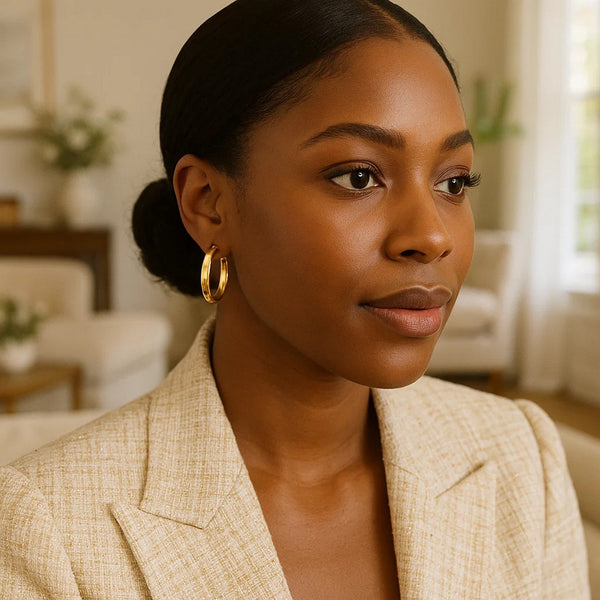 These 35mm Wedding Band hoop earrings are the perfect elegant & stylish design. These will definitely add a bit of uniqueness to your collection. Crafted in 14k yellow gold with a high polish finish & a snap closure.