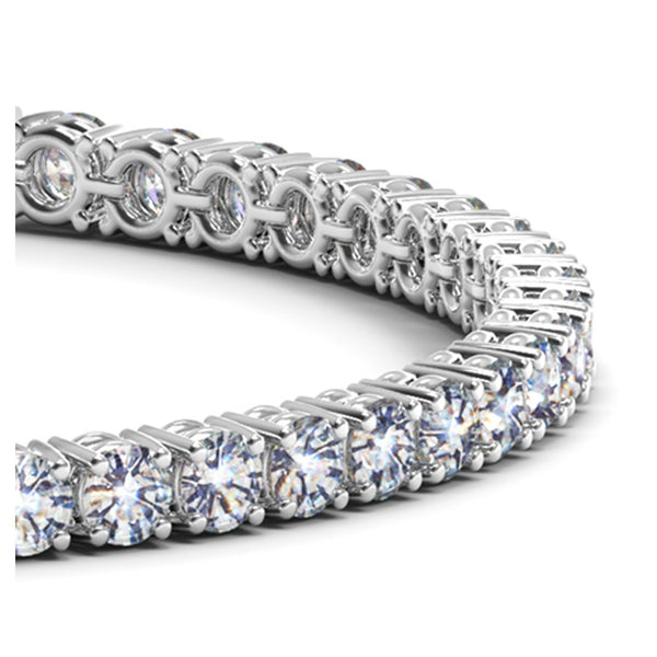Classic four prong 10 carat total weight diamond tennis bracelet showcasing perfectly matched brilliant round cut lab grown diamonds set in 14k white gold.
