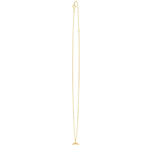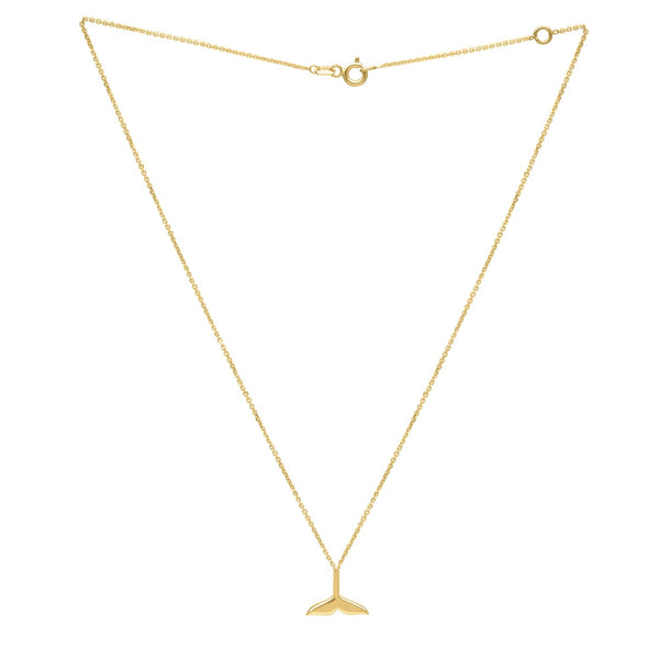 Celebrate the beauty of the ocean with this 14k yellow gold whale tail necklace, featuring a polished pendant that gleams like sunlight dancing on the waves. Paired with an 18 inches chain, the whale tail pendant, symbolizing a deep connection to the sea, is sure to make a splash. Secured with a spring ring clasp closure.